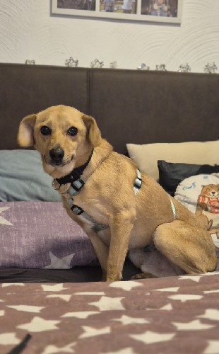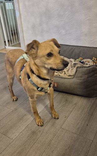 Nero ist ein 2019 geborener Rüde, ca. 51 cm groß und aktuell 24,5 kg schwer (3–4 kg dürfen gern noch runter). Er zeigt sich als absolut freundlicher Hund, der am Anfang etwas vorsichtig ist, aber sehr schnell auftaut. Besonders Frauen gegenüber öffnet er sich fix, bei Männern braucht er einen Moment mehr – ohne dabei ängstlich oder panisch zu sein. Er ist einfach ein Hund, der erstmal schaut, wer da vor ihm steht.