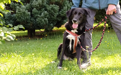 Bella geht gerne spazieren, läuft dabei gut an der Leine, springt aber bei manchen Hundebegegnungen oder Wildbegegnungen in die Leine. Bei einem Hund wie Bella, die immerhin 68 cm und 38,5 kg mit bringt, muss man daher als Mensch standfest sein. Sie kennt die Grundkommandos wie „Sitz“, „Platz“, „Komm“ und führt diese "meist" zuverlässig aus.;-)