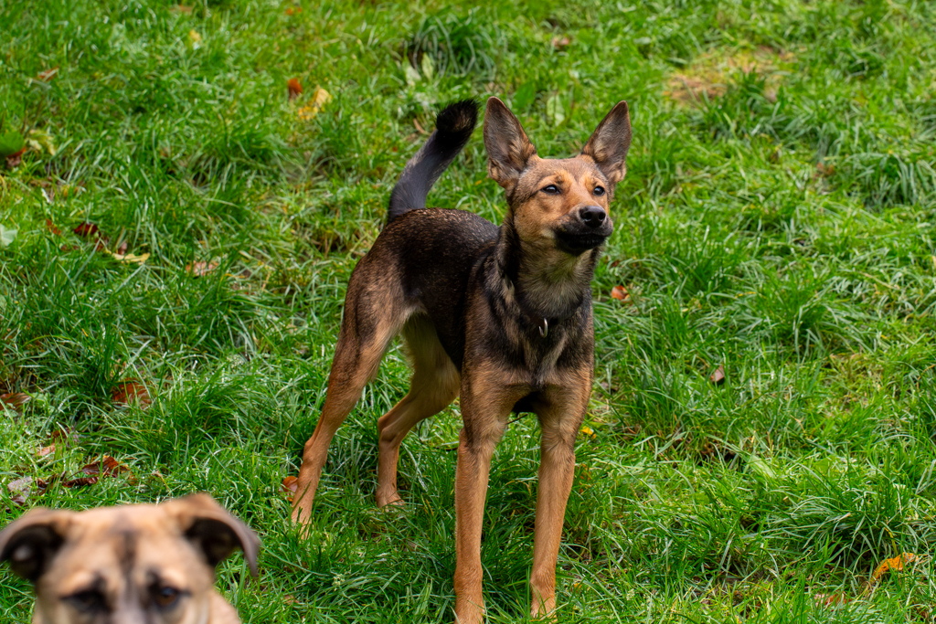 In der Hundegruppe blüht sie total auf, flitzt über die Wiesen und ist einfach glücklich. Den Umgang mit anderen Hunden kann sie wirklich prima, was ihr beim Menschen einfach eben noch fehlt. Sie braucht Menschen, die viel Zeit und Geduld mitbringen um ihr den Menschenkontakt von „muss“ in „will“ umzuwandeln. Wenn sie frei entscheiden kann, kommt sie auch mal zum Menschen und freut sich, wenn der Mensch aber aktiv etwas von ihr möchte, fällt ihr das sehr schwer.