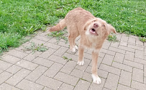 Krasi ist ein junger Hüpfer, die dem Menschen sehr zugewandt ist. Sie muss noch alles lernen und das möchte sie auch. Das an der Leine laufen ist anfangs auch noch ziemlich stockend, bessert sich aber mit der Zeit.