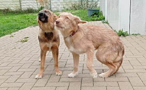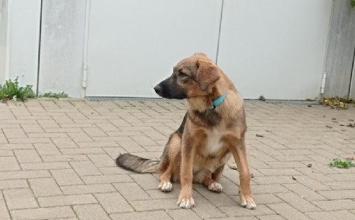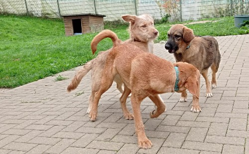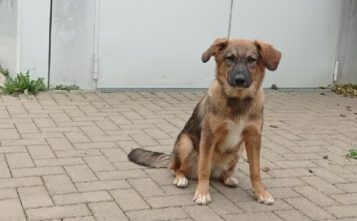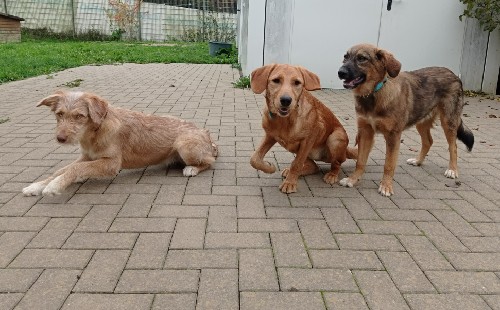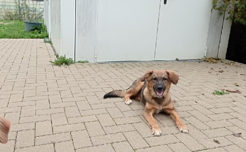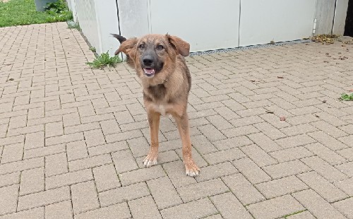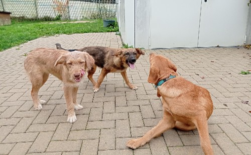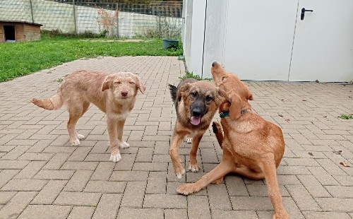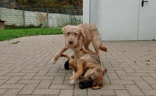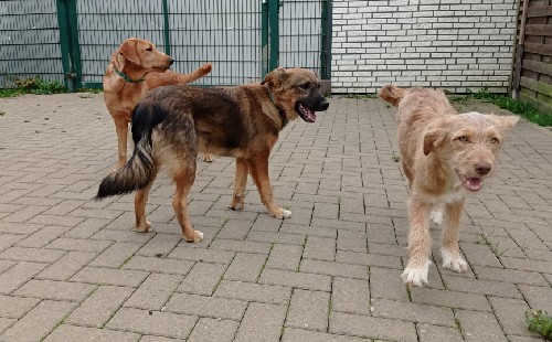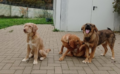 Mit den anderen Hunden in der Hundegruppe kommt sie prima zurecht, da lernt sie gerade wie weit man im Sozialkontakt so gehen kann. Ähnlich gestaltet sich das bei uns Menschen, als junger Hund testet man eben wie das Zusammenleben mit dem Menschen so funktioniert. In beiden Fällen ist sie aber sehr konform und übertreibt es nicht. Grundlegend ist sie aber ein sanftes, etwas schüchternes Mädchen die einfach nur gefallen möchte.