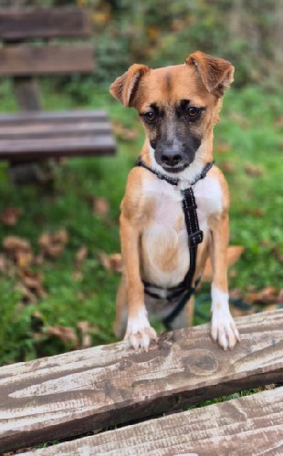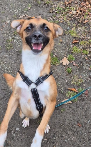 Kira ist etwa **ein Jahr jung**, wiegt **knapp 10 kg** und misst **ca. 37 cm Schulterhöhe** – eine sehr angenehme, handliche Größe. Sie ist eine **verspielte, freundliche junge Hündin**, die sich **mit allen anderen Hunden hervorragend versteht**.